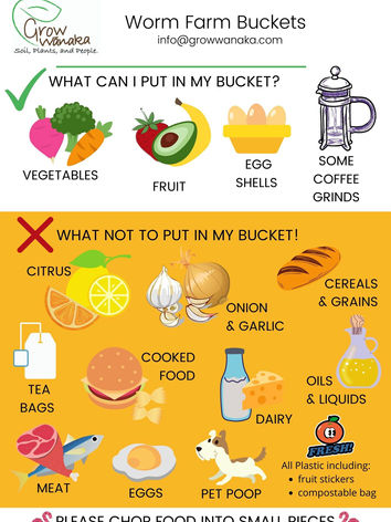 Deliver your organics to our small white buckets at our designated and signed drop off hub located at 197 Outlet Road Wanaka. The drop off hub is just to the left of the main garden gate and produce pantry as you arrive at the garden. Grow Wānaka can be found on google maps.